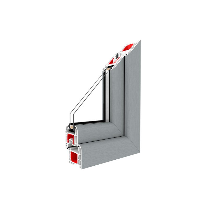 Profilé du dormant et du vantail à 5 chambres, de classe A, fabriqués exclusivement à partir de matériaux non recyclés, 70 mm de profondeur.