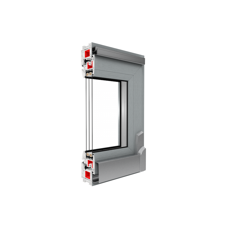 Profilés du dormant et du vantail à 7 chambres, de classe A, fabriqués exclusivement à partir de matériaux non recyclés, 82 mm de profondeur.